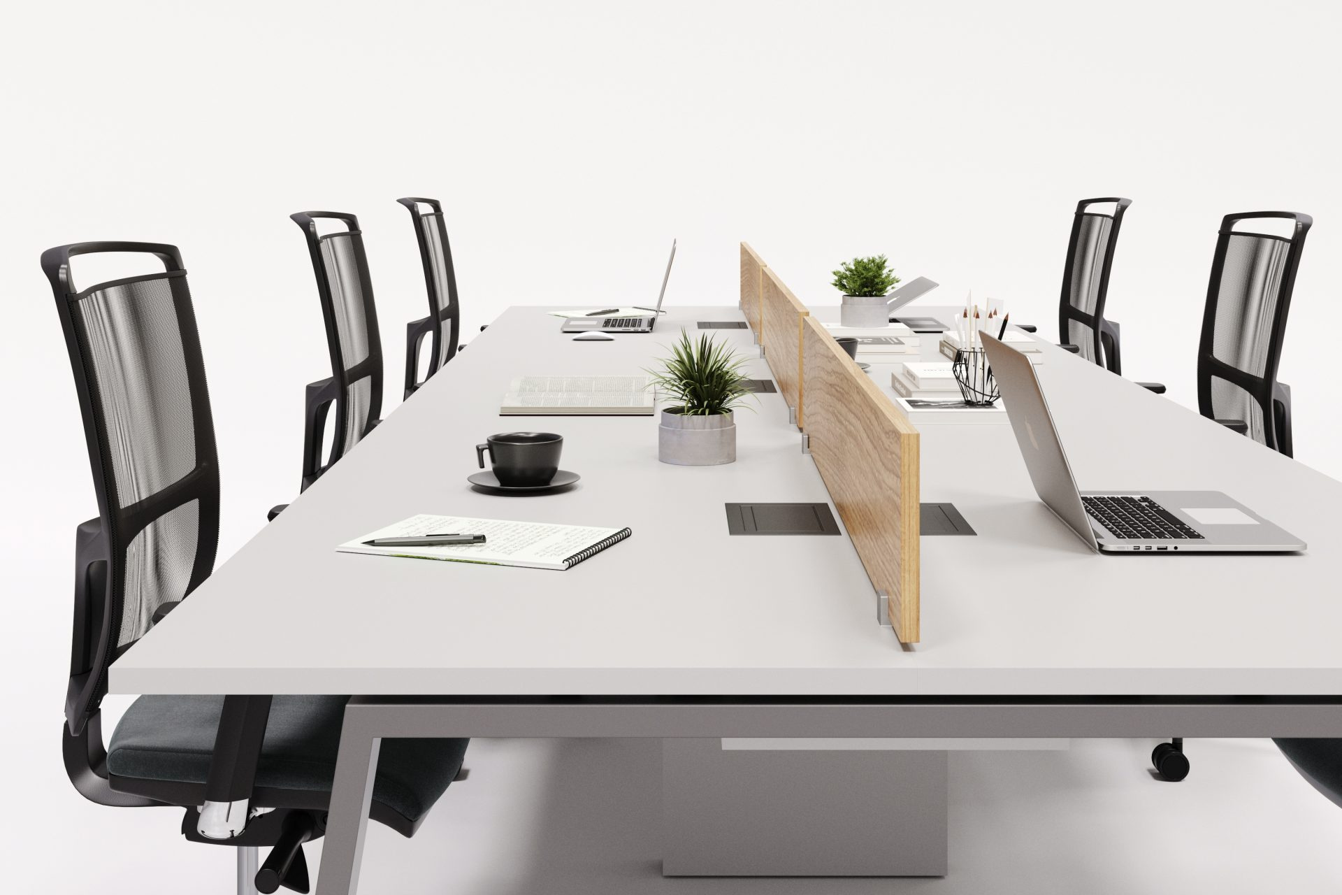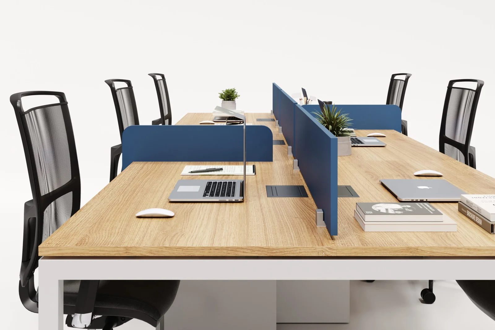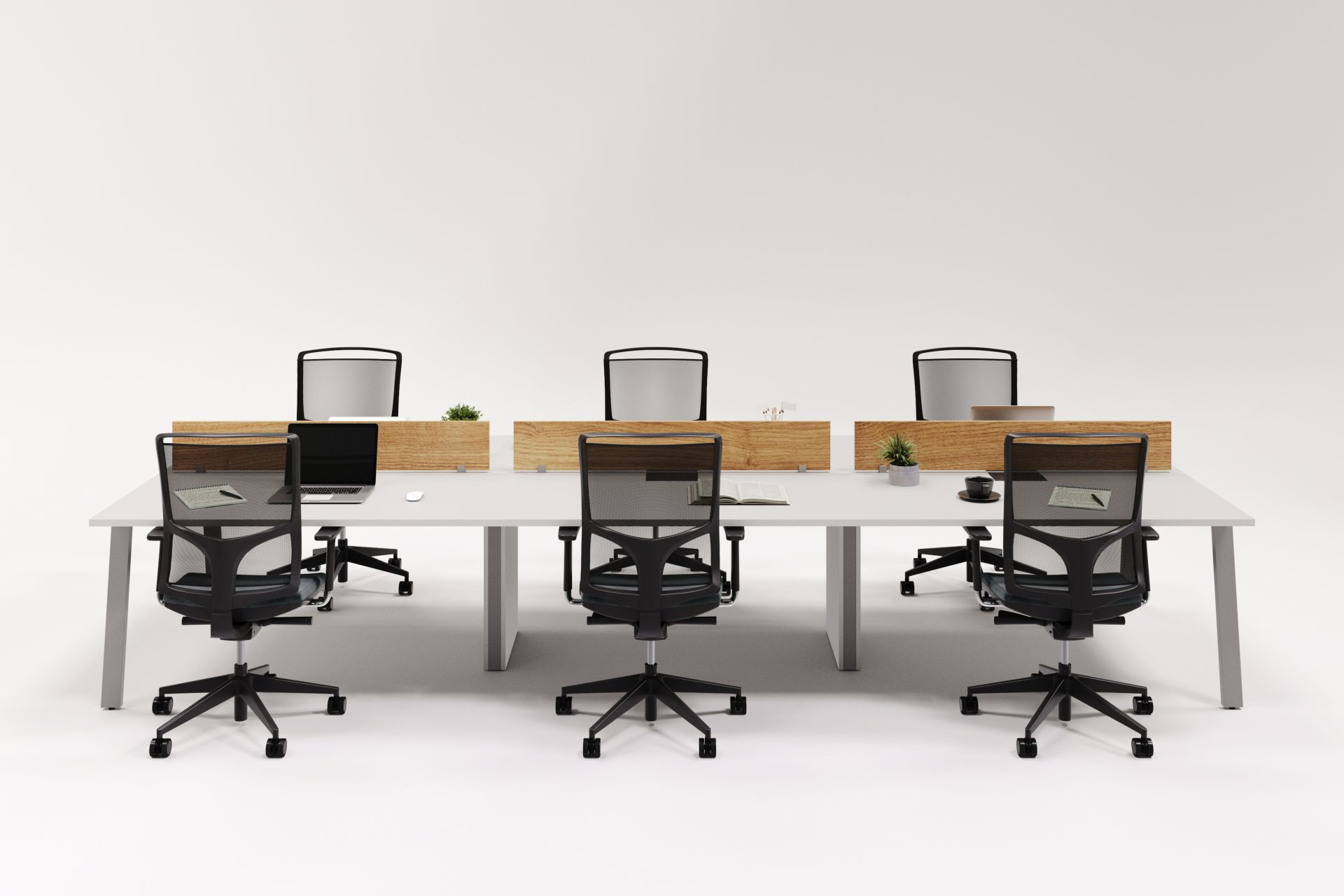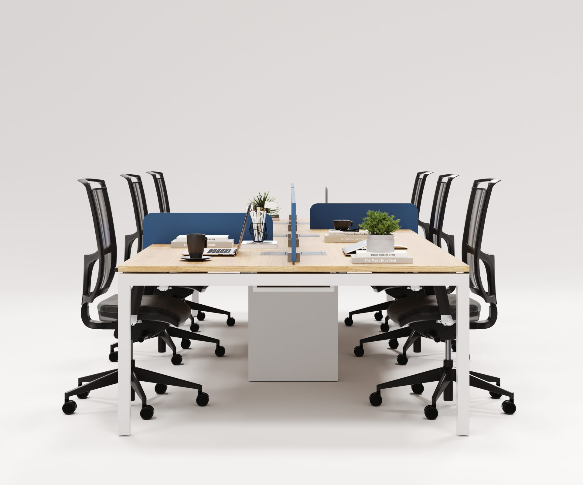 A Plataforma Painel com Divisória Central é uma solução moderna e funcional para escritórios que buscam unir privacidade e integração.