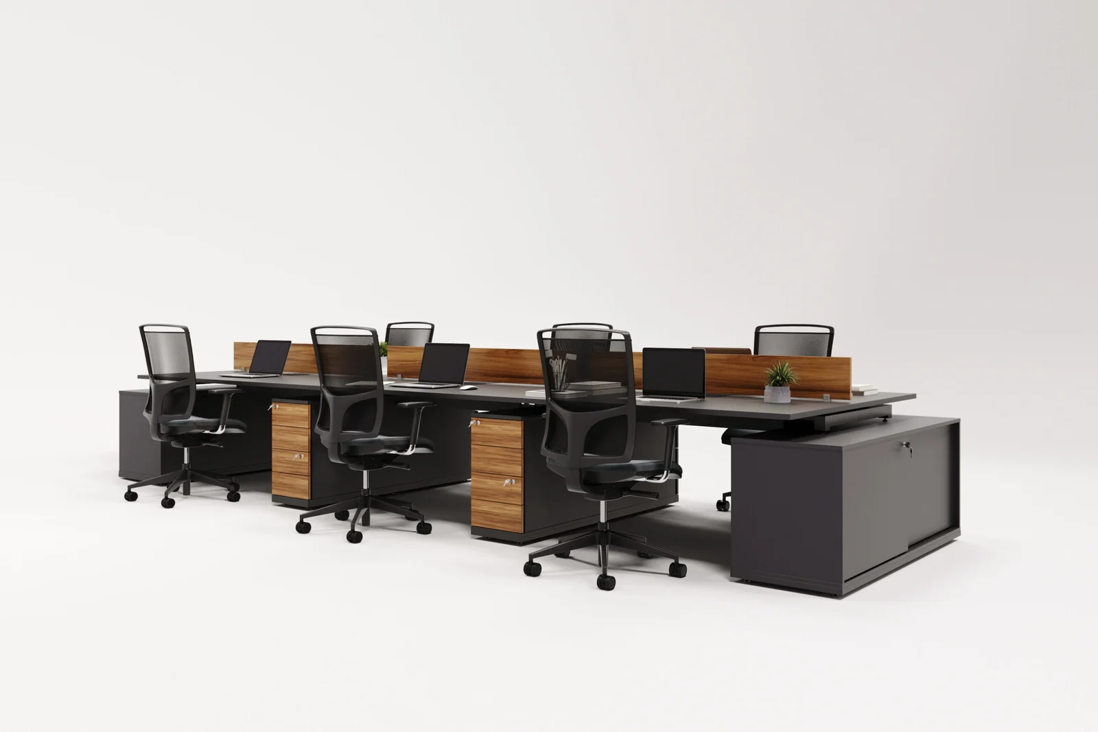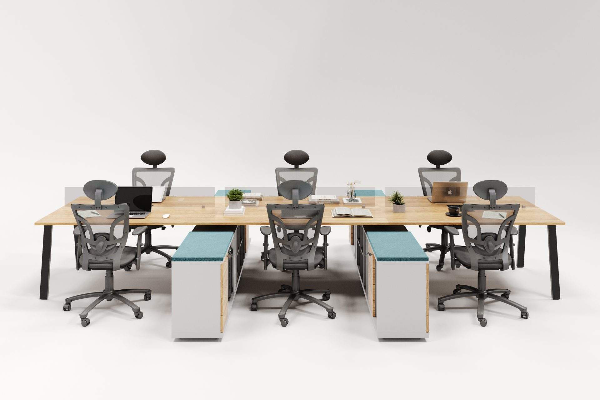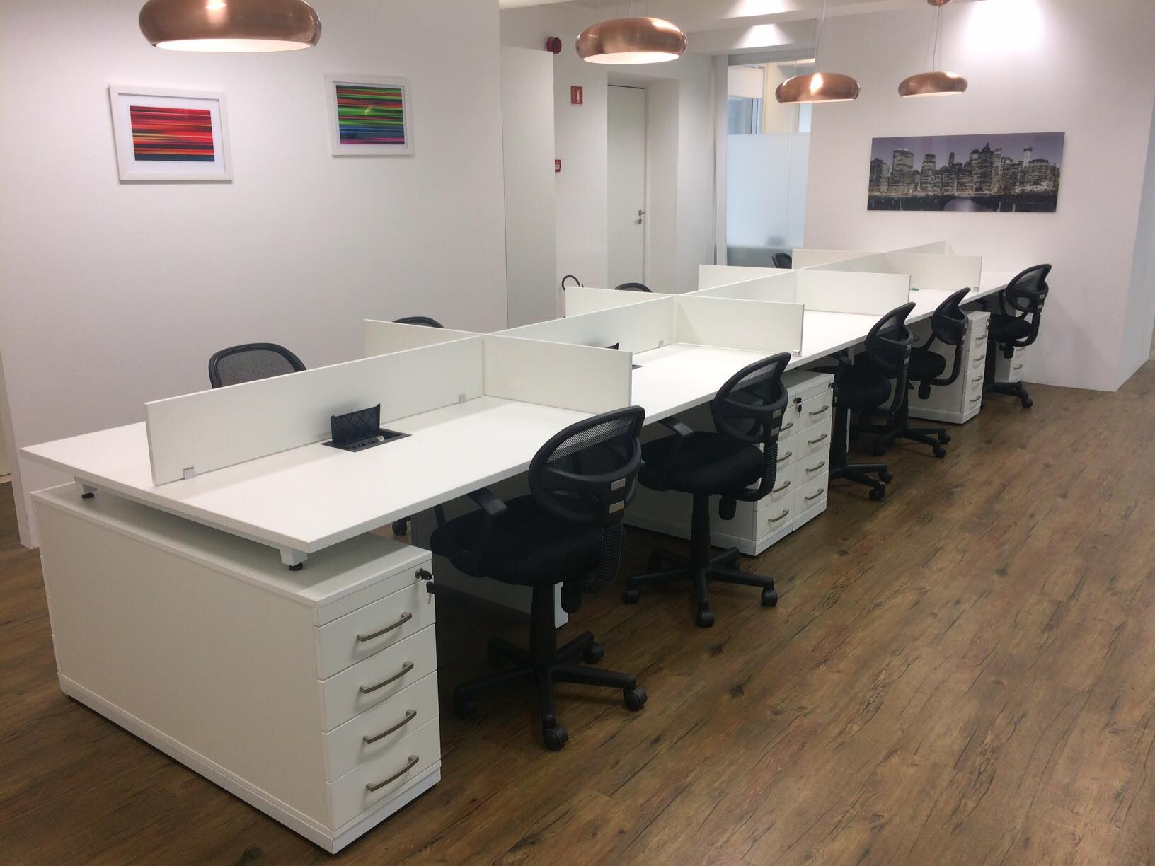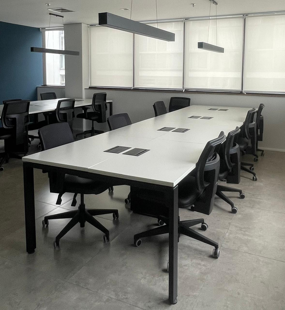 Composta por estações integradas, a plataforma permite melhor aproveitamento do espaço e facilita o trabalho em equipe, sendo ideal para escritórios, coworkings e empresas que valorizam o conceito open space.