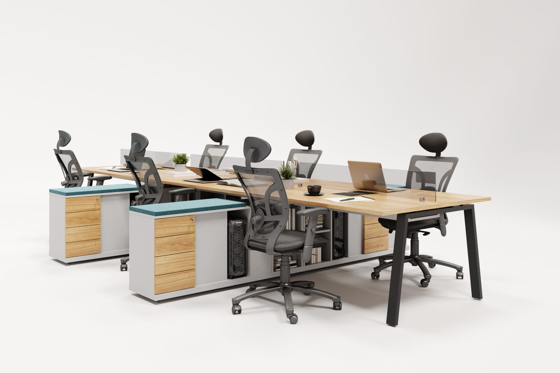 Plataforma Rebatida 4 lugares, é perfeita para quem gosta de trabalhar em um ambiente colaborativo e ao mesmo tempo organizado.