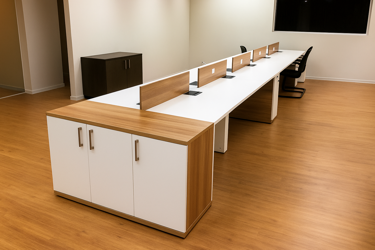 Ideal para escritórios, coworkings e empresas que valorizam produtividade, ergonomia e estética contemporânea.