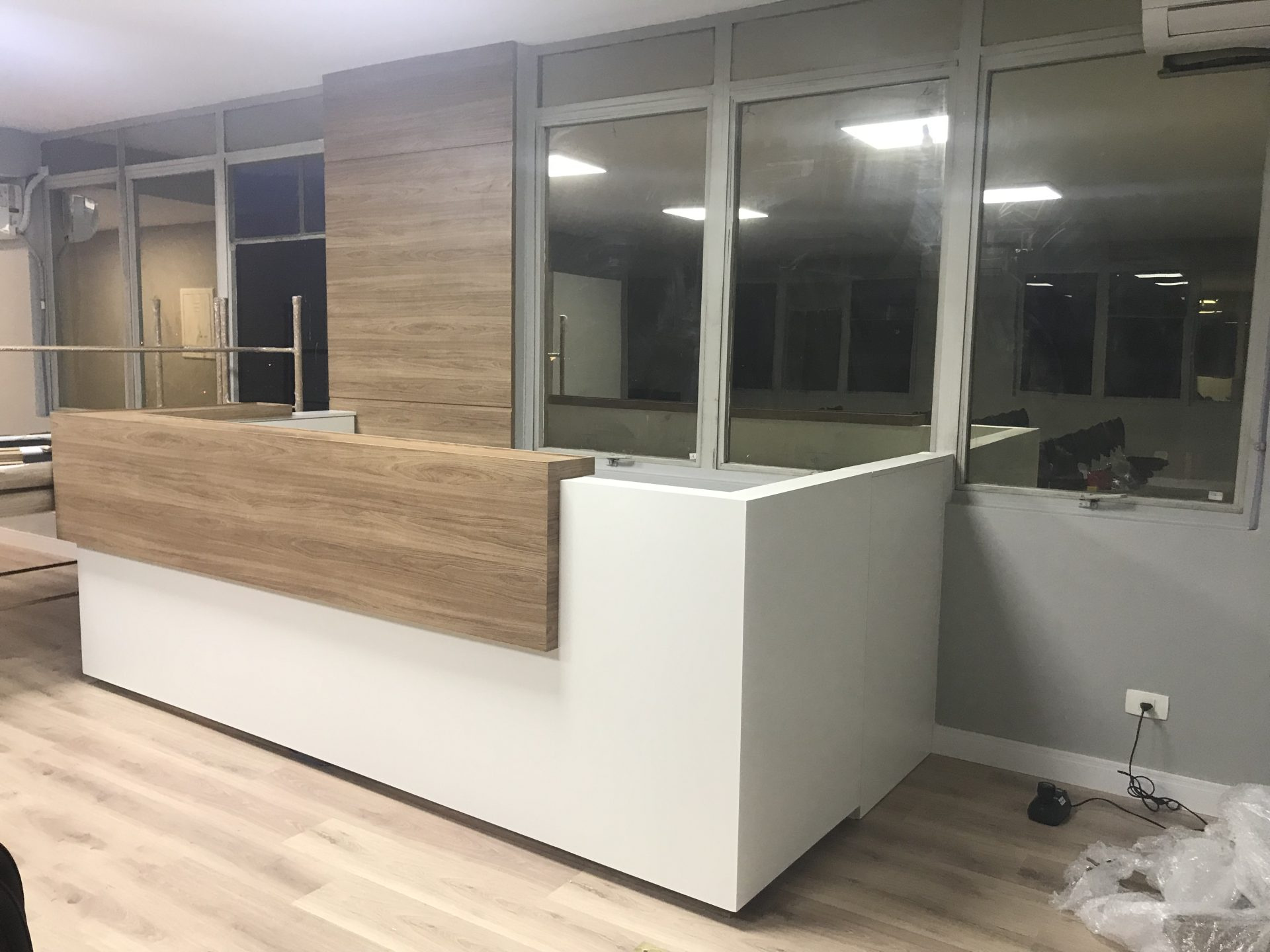 As peças oferecem ergonomia para o atendente e conforto visual para o visitante, podendo incluir iluminação embutida, painéis decorativos e acabamentos em MDF ou laminado de alta resistência.
